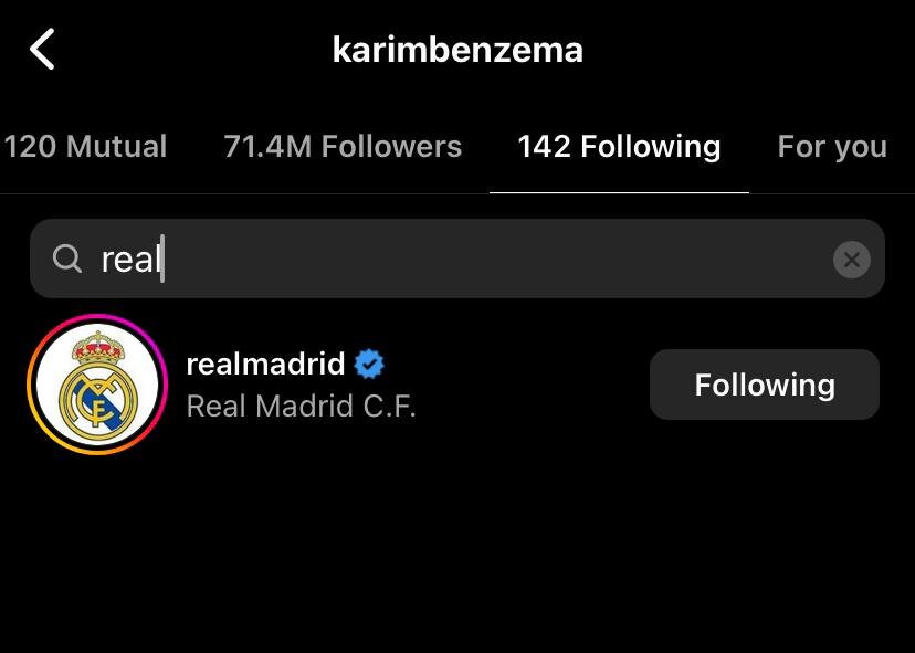 پس از جدایی بنزما از رئال، صفحه اینستاگرام این باشگاه ستاره فرانسوی را از لیست دنبالکنندگان خود حذف کرده بود که این اقدام با حرکت مشابه بنزما همراه است. با این حال بنزما تنها چند روز بعد دوباره رئال مادرید را در اینستاگرام فالو کرده تا مشخص شود مشکلی بین او و تیم سابقش نیست.