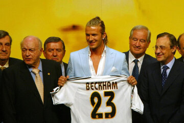 روز بعد یعنی دوم جولای، جنون طرفداران بابت حضور بکام به اوج رسید. بیش از 500 خبرنگار و 46 دوربین تلویزیونی از پنج قاره به مراسم معارفه ستاره انگلیسی آمده بوند. بکام با کت و شلوار به رنگ آبی آسمانی با پیراهن سفید و موهایی که به سبک سامورایی بسته بود، با لبخند وارد صحنه شد. دی استفانو سمت راست او و فلورنتینو سمت چپ او قرار داشتند. او با پیراهن شماره 23 رئال که نمادی از شماره مایکل جوردن اسطوره بسکتبال آمریکا بود، عکس گرفت و گفت: «خانم ها و آقایان، بودن در رئال مادرید رویایی بود که به حقیقت پیوست. ممنون از شما و زنده باد مادرید.» شبکه های BBC در انگلیس و CNN در آمریکا مراسم را به طور زنده پخش می کردند.