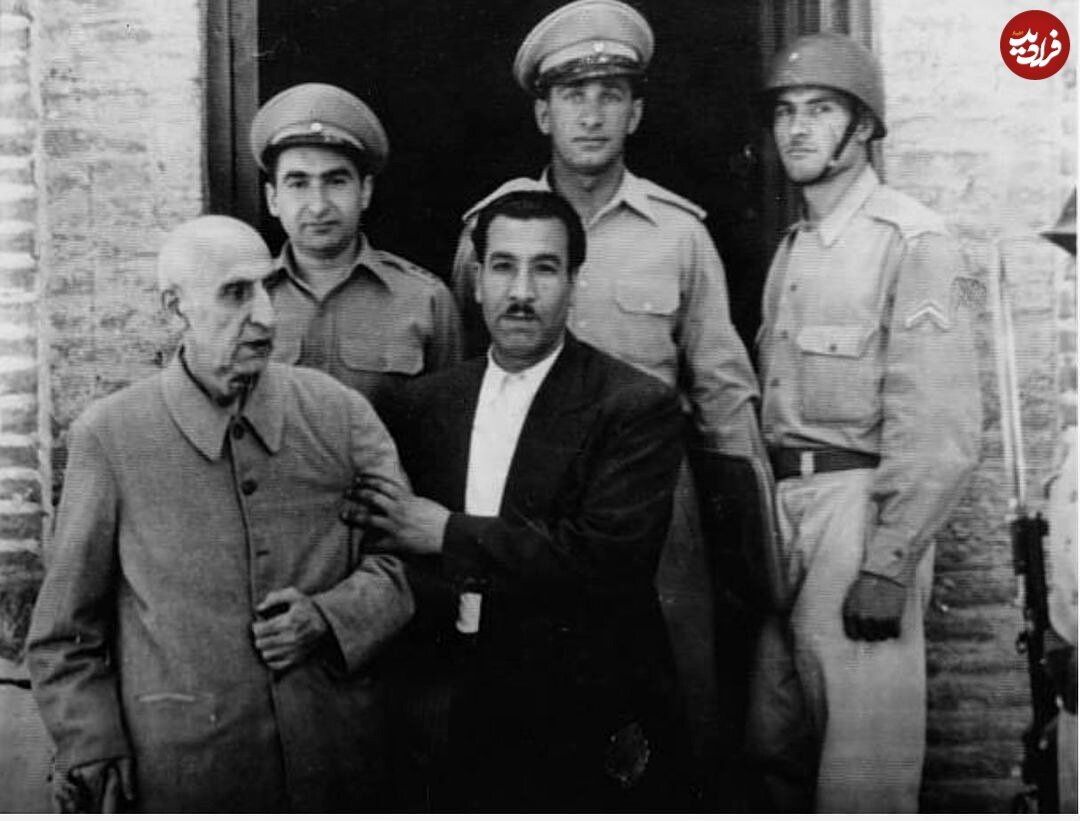 فرادید نوشت:در این تصویر دکتر محمد مصدق به همراه گارد مخصوص نخست وزیری مقابل خانه اش را مشاهده خواهید کرد. نفر پشت سر مصدق ، سرهنگ ممتاز، مسئول گارد منزل نخستوزیر قرا دارد که در روز ۲۸ مرداد مورد اصابت گلوله قرار گرفت.