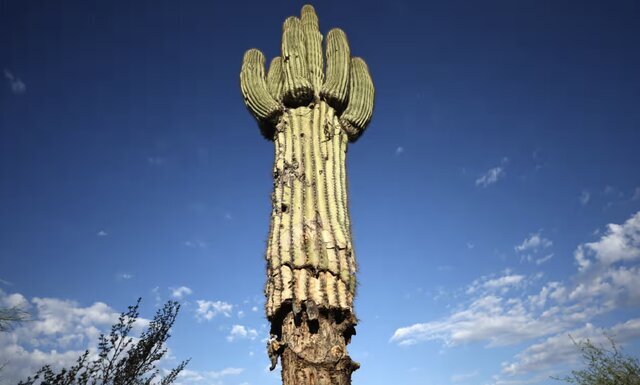 این گونه از کاکتوس که به‌عنوان نشان تجاری مناطق صحرایی در آمریکا شناخته می‌شود در هفته‌های اخیر از شدت گرمای بی سابقه زرد و پژمرده شده‌اند. برخی از درختان بیست ساله، تمام خارهای خود را از دست داده‌اند و قسمت‌هایی برخی دیگر از این نوع کاکتوس به‌طور کامل از بین رفته است.