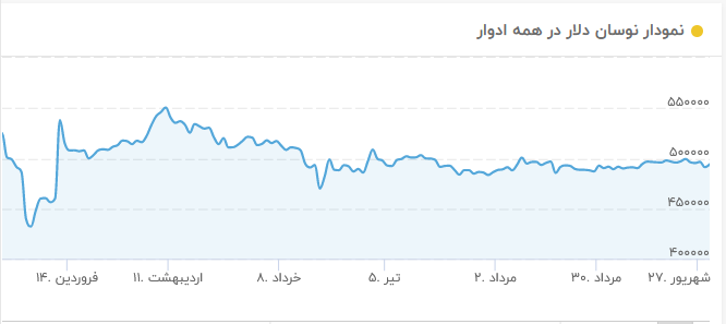 نمودار قیمتی حاکی از آن است که در طول ۳ ماه تابستان، دلار در اغلب روزها در رفت و برگشت میان کانال ۴۸ و ۴۹ هزار تومان بوده است و تنها در چند روز، کانال ۵۰ هزار تومان را هم به خود دید.