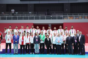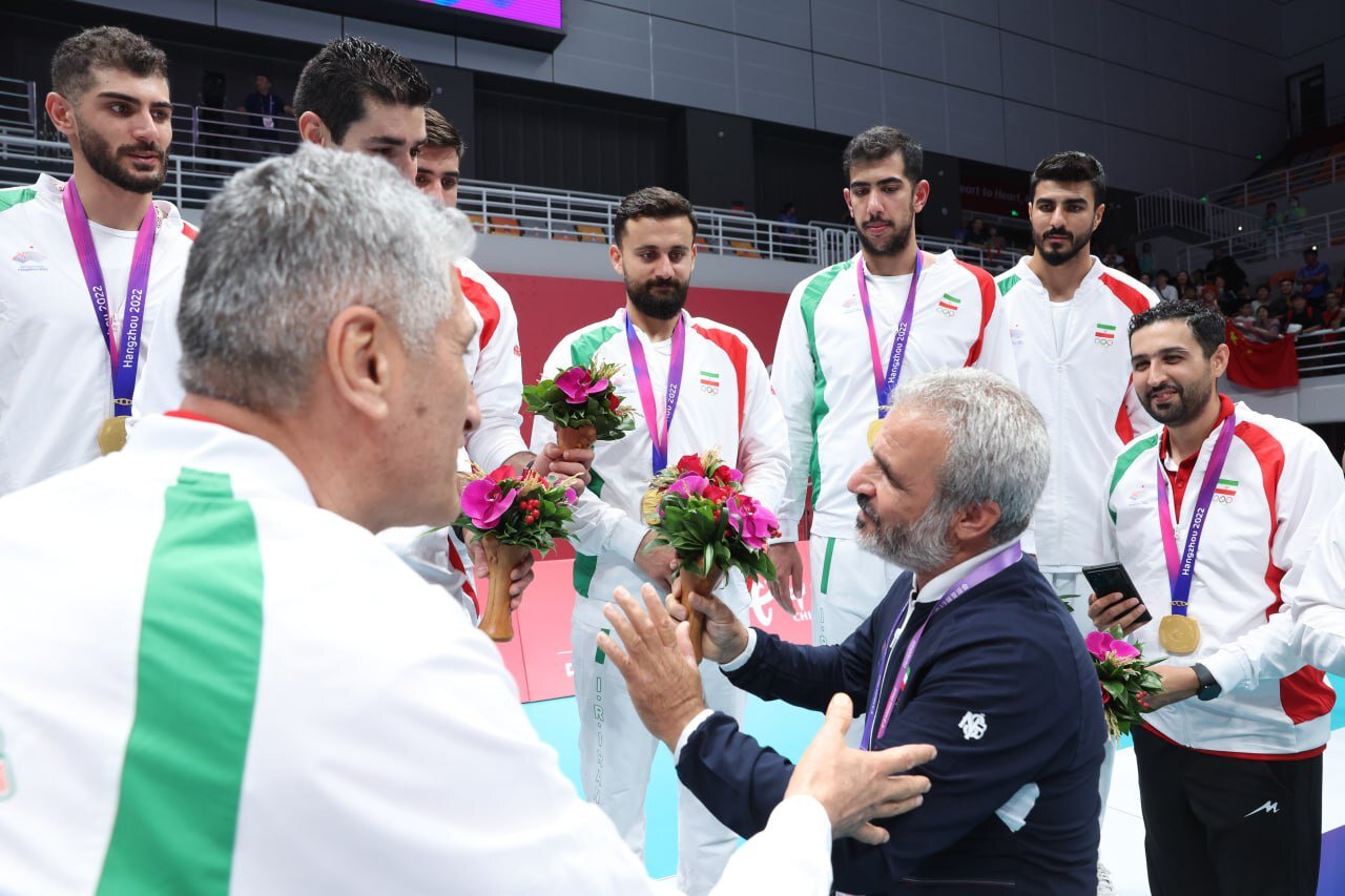 شاگردان بهروز عطایی درحالی در سالن لینپینگ و در مقابل چشم صدها تماشاگر چینی روی سکوی قهرمانی ایستادند که مراسم اهدای مدال ملیپوشان والیبال ایران با حضور ویژه پدر شهید حججی برگزار شد و پدر معنوی کاروان با اهدای گل به ملیپوشان طلایی کشورمان از آنها تقدیر کرد.