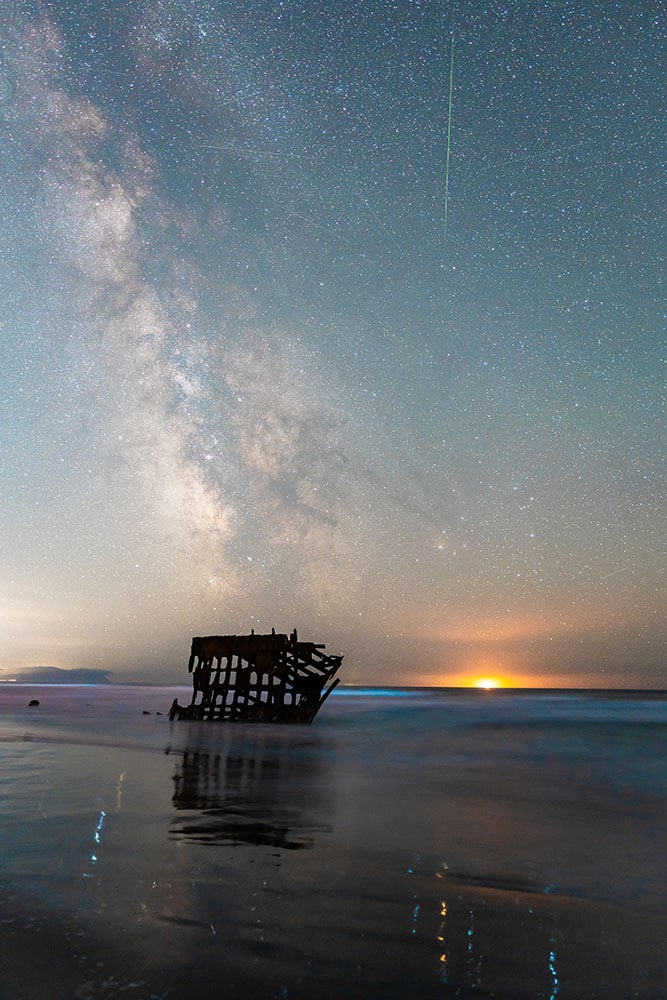 جی‌شاه در پستی در اینستاگرام خود نوشت:« یک شهاب سنگ که از بارش شهابی برساوشی آمده‌است، کهکشان راه شیری، بیولومینسانس، یک کشتی غرق شده، اقیانوس آرام و یک کشتی در دوردست، همه در یک نوردهی ۱۵ ثانیه‌ای ثبت شده‌اند.»