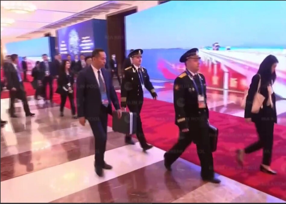 به گزارش خبرآنلاین، ویدئویی که از او پس از دیدارش با شی جینپینگ، رئیس جمهور چین منتشر شده است، نشان میدهد که او در حال رفتن به ملاقاتی دیگر در حالی است که نیروهای امنیتی اطراف او را احاطه کردهاند و دو افسر نیروی دریایی روسیه نیز در کنارش حضور دارند که هر کدام یک کیف به دست گرفتهاند.