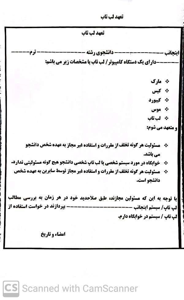 بهروز عزیزی، فعال رسانهای در این متن توئیتری آمده: «فرم تعهد بازدید از لپ تاپ دانشجویان در دانشگاه فنی و حرفهای ولی عصر! یا تعهد بده یا لپتاپ به داخل خوابگاه نیاور. دادگاههای انگیزاسیون قرون وسطی هم اینطور در زندگی خصوصی مردم دخالت نمیکرد»