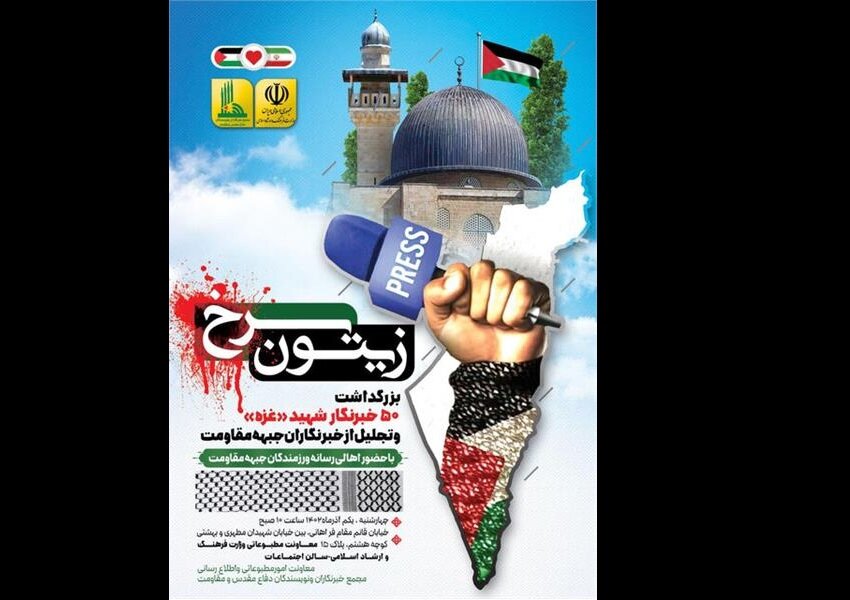 معاونت امور مطبوعاتی و اطلاعرسانی وزارت فرهنگ و ارشاد اسلامی و مجمع خبرنگاران و نویسندگان دفاع مقدس و مقاومت، آیین بزرگداشت ۵٠ خبرنگار شهید «غزه» و تجلیل از خبرنگاران جبهه مقاومت را با عنوان «زیتون سرخ» برگزار میکنند.