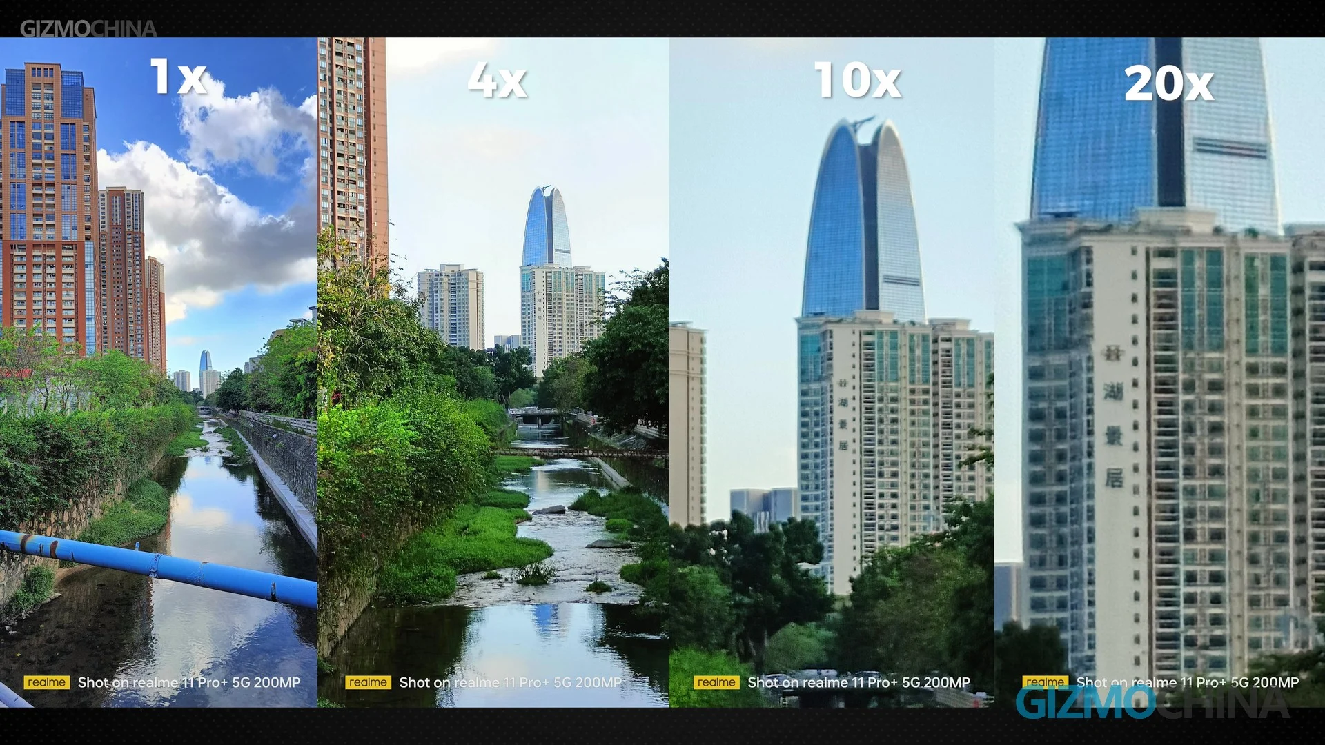 دوربین خارجی این پرچمدار قابلیت عکاسی تا زوم ۴ برابری را دارد. دوربین اصلی آن میتواند به عنوان لنز تله فوتو و همچنین لنز ماکرو استفاده شود. دوربینهای تله فوتو دارای نزدیکترین فاصله فوکوس هستند، بنابراین نزدیک شدن به اندازه کافی برای عکاسی از اشیاء دشوار است. فناوری زوم درون سنسور Realme 11 Pro+ میتواند این مشکل را حل کند.