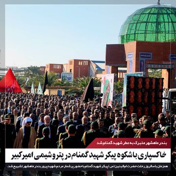 به گزارش خبرآنلاین به نقل از روابط عمومی و امور بین الملل پتروشیمی امیرکبیر، از ماه گذشته و با تشکیل ستاد هماهنگی و استقبال از شهید گمنام، مراسمات مختلفی در شهرستان های بندر ماهشهر، بندر امام خمینی برگزار شد و پیکر پاک این شهید پس از تشییع و برگزاری مراسم وداع در چند کارخانه پتروشیمی، چندین مدرسه مدارس و مسجد در سطح منطقه، فضای بندر ماهشهر را عطرآگین کرد.