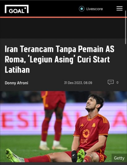 اما نکته مهمی که این سایت به آن اشاره کرده این است که مهاجم ایرانی به دلیلی جز مصدومیت غایب احتمالی ایران در جام ملتهای آسیا خواهد بود. گل دلیل این اتفاق را توافقنامه مهاجم ایرانی با باشگاه رم اعلام کرده که بر اساس آن سردار نمیتواند شاگردان امیر قلعهنویی را در قطر همراهی کند.