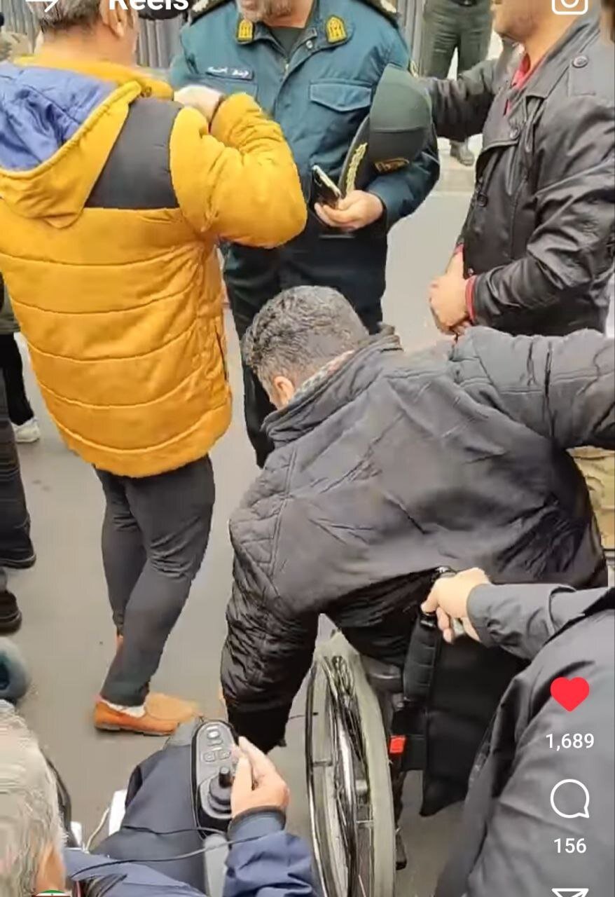 وی ادامه داد: مجبور شدیم بایستیم، برخورد پلیس با معلولان حاضر در تجمع بسیار بد و همراه با الفاظ و فحشهای بسیار رکیک بود در حالیکه بین ما خانمهای دارای معلولیت هم بودند و پلیس دستکم جلوی خانمها باید مراعات میکرد و در ادامه گوشی چند نفر از بچههایی که فیلم میگرفتند، را هم گرفتند.