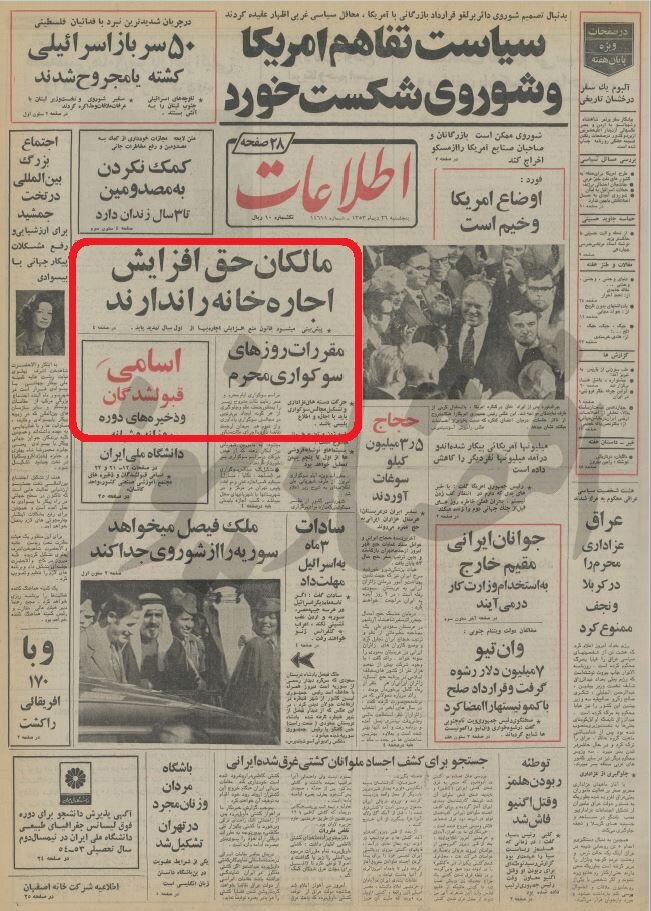 اشاره روزنامه اطلاعات به در قانون تعدیل و تثبیت اجارهبها است که در بهمنماه سال 1352به تصویب رسیده بود و بر اساس آن، ملاک مالالاجاره اسفندماه سال 1351 تعیین شده و باید این اجارهبها تا آخر سال 1353 همچنان ثابت می ماند و افزایش ممنوع بود.