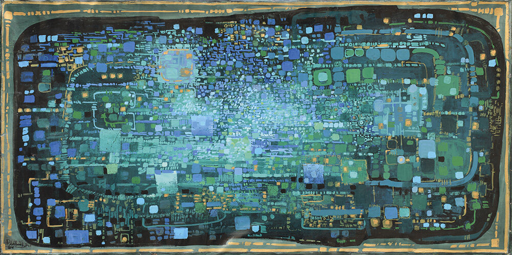 در میان همه ی این بازگشت به خویشتن، بازگشت دو نفر آبستره (تجریدی) بود. یکی از آنان سهراب سپهری است که معلوم نیست چرا در این روزگار آثارش قیمتهای سرسامآوری میخورد. درختهای او که نه سرشاخههای سرسبزش معلوم است و نه ریشههای زخمتش، نظر همه را جلب کرده است. این تکه از جان درخت سر در عرفان شرقی دارد که از بودا تا عطار راه میبرد و نشان دارد. اگر برای همه سایهسار درخت اهمیت دارد و یا برای عدهای ریشهها، سهراب آن تنهی بیادعا که بار همه را بر دوش میکشد، تصویر میکند. نقاشیهای سهراب عجیب ایرانی است و بیابانها و باغهای شهرش کاشان در آن متجلی است. او که در عرفان شرقی مستغرق است و در اشعارش در بنارس سر هر کوچه چراغی ابدی میبیند و در حوضچه اکنون رواقیون آبتنی میکند، برای حضور مطلق وجود و بود، راهی جز سوارشدن بر قطارهای مختلف نمیبیند و در حالات و مقامات بهجایی میرسد که صدای پای آب را میشنود و وضو با تپش پنجرهها میگیرد.
