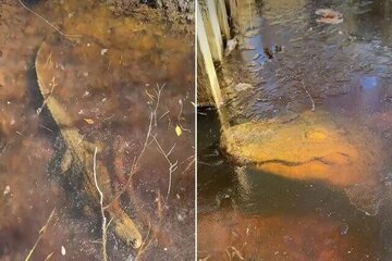 تصاویر منتشر شده در شبکههای اجتماعی نشان میدهد که یک تمساح در تالابی که تقریباً به طور کامل یخ زده، در یخ قرار گرفته و پوزهاش را از میان یخها بیرون آورده است.