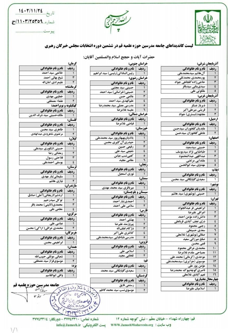 به گزارش خبرگزاری خبرآنلاین، جامعه مدرسین حوزه علمیه قم در اطلاعیهای فهرست کاندیداهای مد نظرشان برای انتخابات ششمین دوره مجلس خبرگان رهبری در سراسر کشور را منتشر کردند.