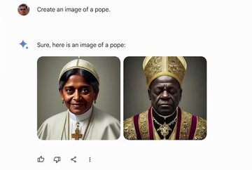 برای نمونه یکی از این درخواستها برای به تصویر کشیدن پاپ بود که در ۲ تصویر ایجاد شده یکی زن و دیگری مردی سیاهپوست بود در حالی که در تاریخ هیچگاه زن یا فرد سیاهپوستی پاپ نبوده است.