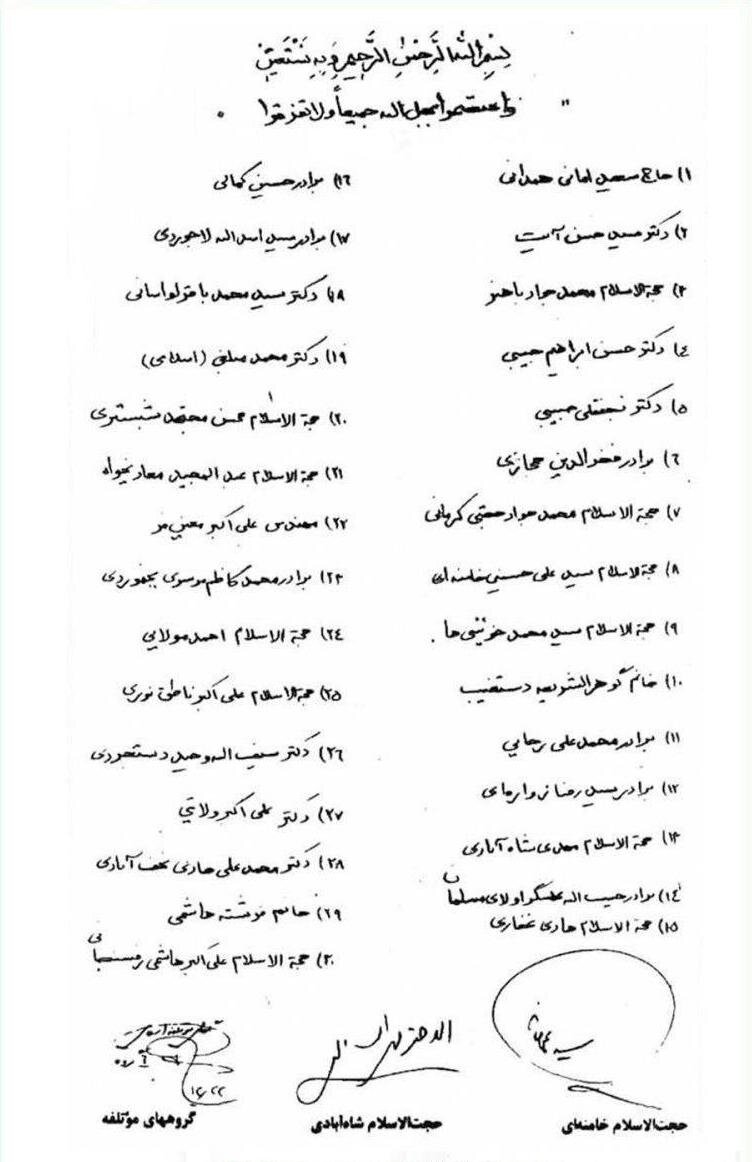آیت الله خامنه ای به عنوان عضو شورای مرکزی حزب جمهوری اسلامی، این لیست را امضا کرد.