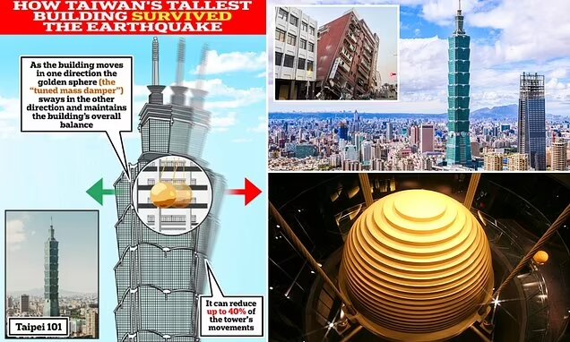 به گزارش خبرآنلاین، از راه حلی مبتکرانه هنگام ساخت این ساختمان با ۵۰۹ متر ارتفاع استفاده شده که نوسانات کلی آن را تا ۴۰ درصد هنگام زلزله و وزش باد کاهش می دهد. یک کُره ۶۶۰ تنی به نام «دمپر جرمی تنظیم شده» از طبقه ۹۲ این ساختمان آویزان است.