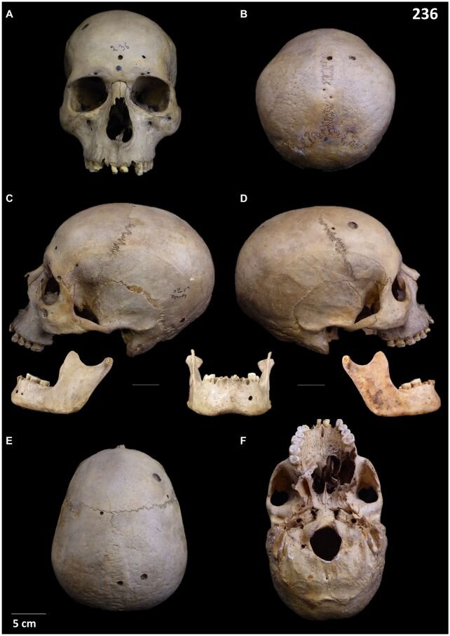جمجمه شماره ۲۳۶ متعلق به مردی است که بین ۲۶۸۷ تا ۲۳۴۵ قبل از میلاد در مصر باستان زندگی میکرد. او در اوایل دهه ۳۰ زندگی خود درگذشت و جمجمه او با حدود ۳۰ ضایعه، مطابق با سرطان متاستاز، پر شده است، اگرچه تشخیصهای احتمالی دیگری نیز وجود دارد.