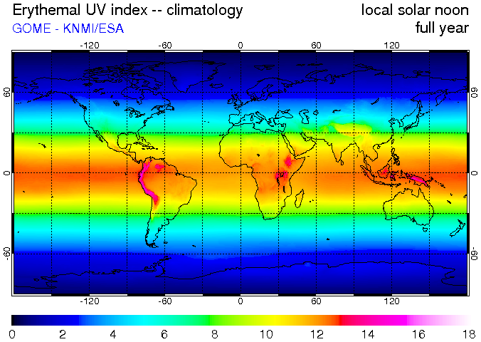 به این معنی است که ریسک آسیب دیدن در معرض آفتاب محافظت نشده بسیار بالاست. افراد پوست روشن ممکن است در کمتر از ۵ دقیقه بسوزند. کارگران در فضای باز و افرادی که آفتاب میگیرند، در معرض خطرند.