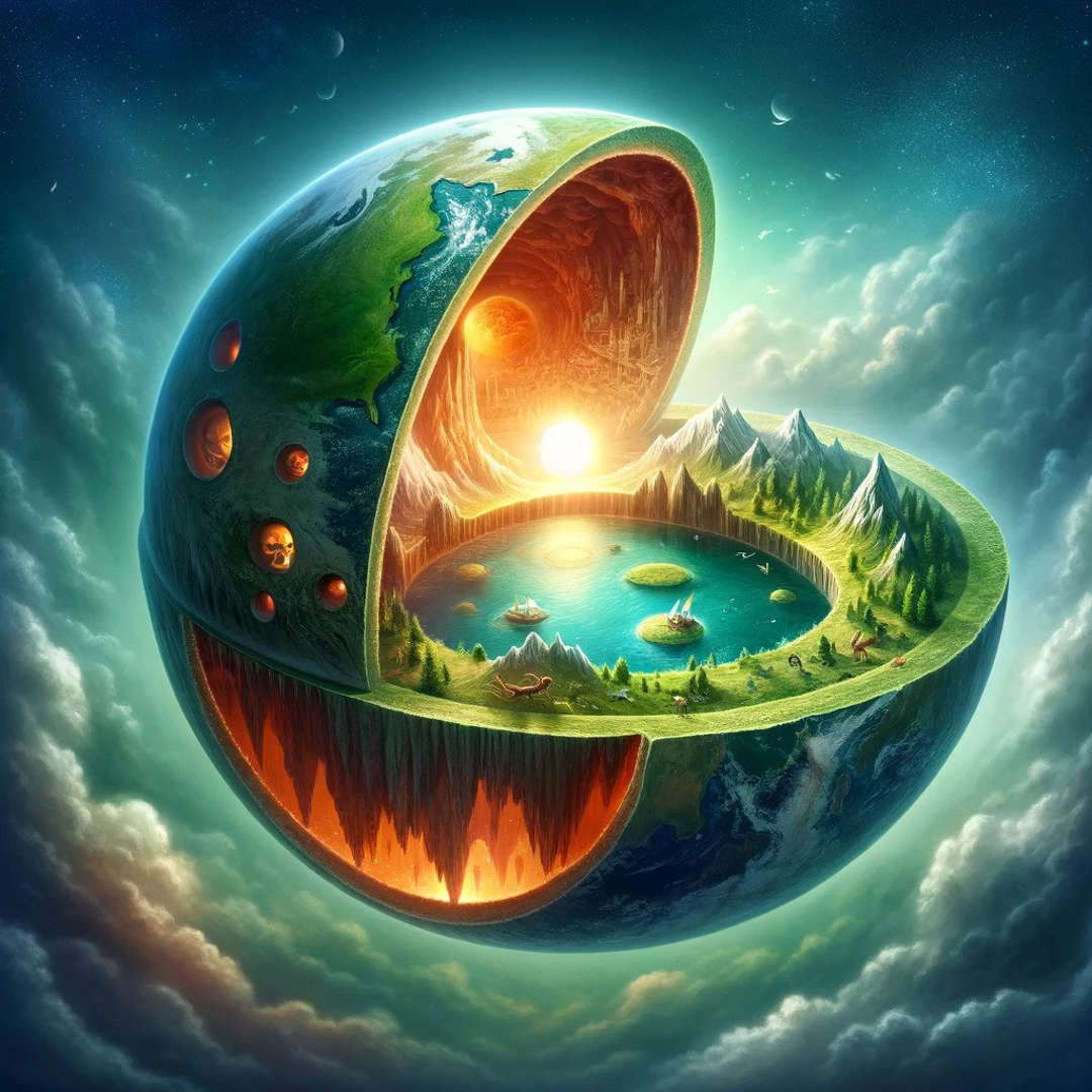بر اساس این نظریه، زمین کاملاً توخالی است یا در بهترین حالت، فضای داخلی قابلتوجهی دارد. برخی از گرایشهای این نظریه حتی وجود تمدن دیگری را پیشنهاد میکنند که داخل زمین زندگی میکند.