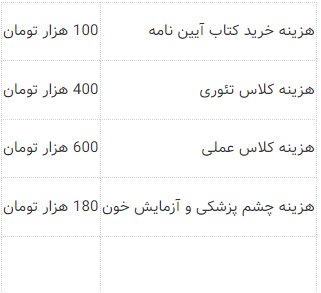روند تشکیل پرونده و ثبت نام در آموزشگاه شامل هزینههای زیر است: