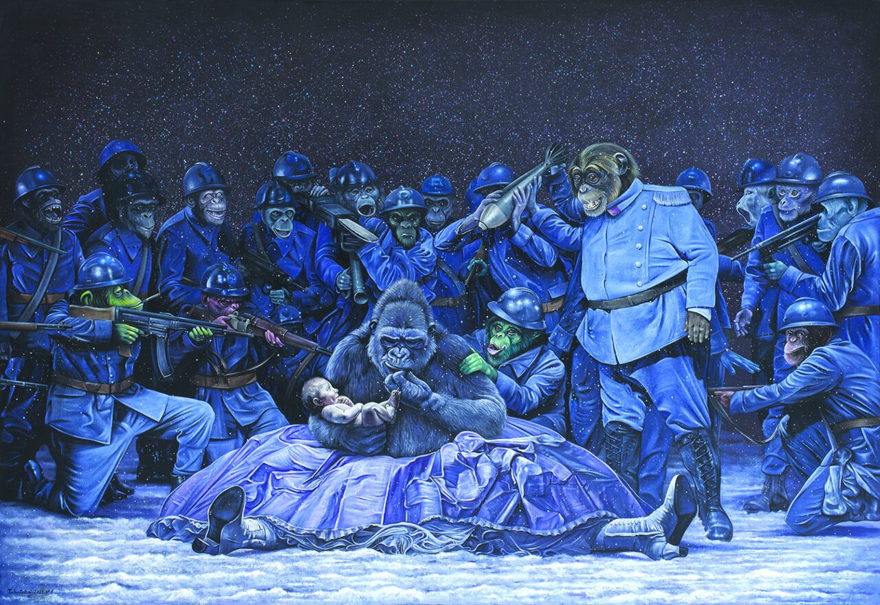دو اثر از دو نقاش جوان در این مجموعه وجود دارد که بازتاب نسلی دیگر از نقاشی ایرانی است، نقاشانی که تجربه زیسته دیگری از جهان داشته و راوی آن هستند. آنها نه به دنبال تکنیک‌های سقاخانه هستند و نه پیرو نقاشی‌های قاجاری و پیش از آن، روایت جهان برهنه شده امروز را می‌کنند، جهانی با ابزارهای پر از خشونت. اثر بدون عنوان از مجموعه «جهش بازتاب» که نقاش جوان آن محمد طباطبایی متولد ۱۳۶۶  جز این آثار است اثری که خشونت جهان را نشان می‌دهد با نوزاد انسانی که روی دستش مانده است. همچنین اثر «بلوط پیر» اثر شنتیا ذاکر عاملی که این اثر هم توسط نقاش بدون توجه به موقعیت گذشته و سنت تولید شده است. این اثر در سه زمینه هم‌زمان روایت می‌شود. بخشی بازی‌های کامپیوتری  و واقعیت مجازی ما، بخشی زندگی روزمره و واقعیت‌های آن و در عمق تصویر موشکی که در حال پرتاب است که معلوم نیست کجای جهان را نابود خواهد کرد.