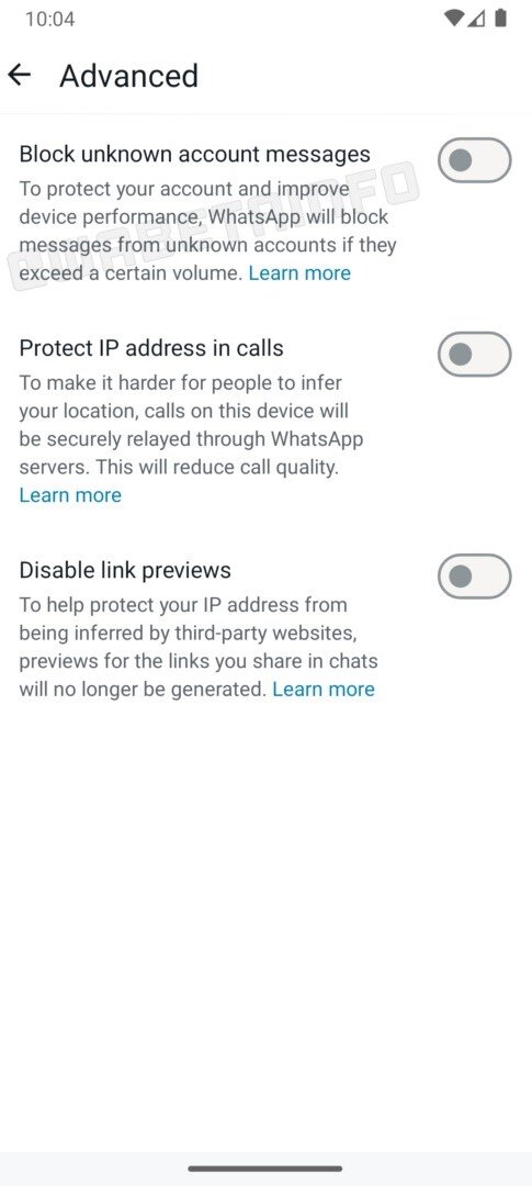 ویژگی دوم پیامهای هرزنامه را درصورت رسیدن به حجم خاصی محدود میکند. ظاهراً این قابلیت هنوز در دست توسعه بوده و در هیچیک از نسخههای بتای واتساپ منتشر نشده است. اگر قابلیت جدید واتساپ منتشر شود، باید بهصورت خودکار شاهد مسدودشدن برخی هرزنامهها در بخش پیامهای این پیامرسان باشیم.