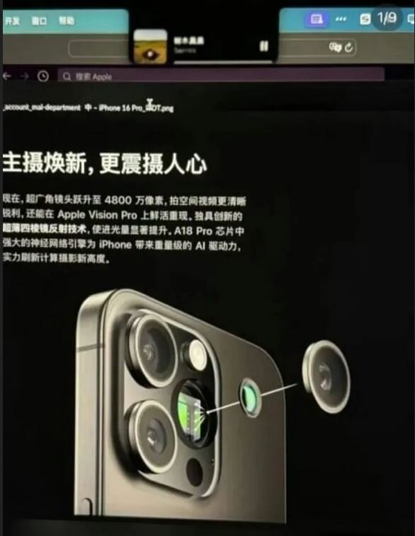 مدلهای پرو و پرو مکس آیفون ۱۶ احتمالاً از تراشهی A18 پرو قدرت خواهند گرفت. پنل پشتی آیفون ۱۶ پرو مکس ظاهراً از دوربین فوق عریض ۴۸ مگاپیکسلی با فناوری بازتاب منشوری فوق باریک میزبانی میکند؛ فناوریای که گفته میشود از موتور عصبی تراشهی A18 Pro استفاده میکند و میتواند کیفیت تصویر را بهبود بخشد و احتمالاً از ویژگیهایی مانند ویدیوی سهبعدی برای هدست ویژن پرو پشتیبانی خواهد کرد.