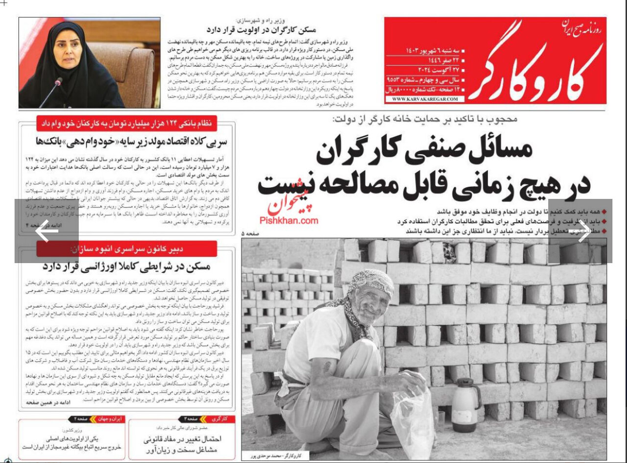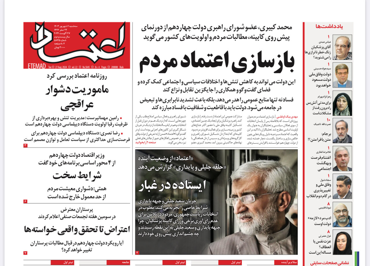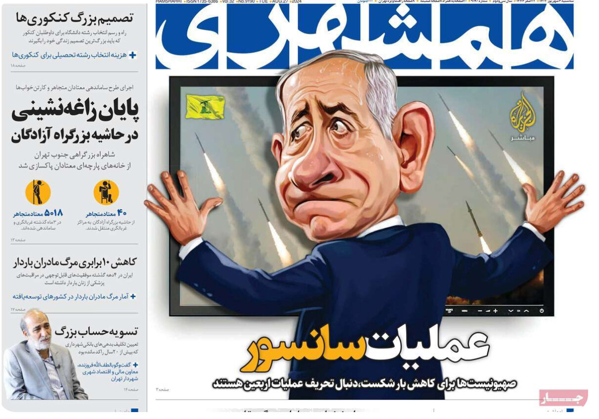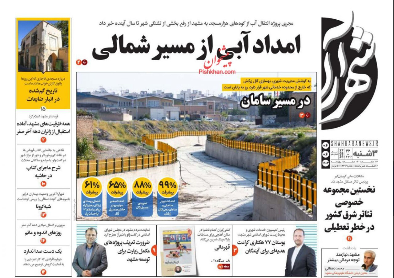 پیشخوان نشریات ششم شهریورماه ۱۴۰۳ اخبار چندان تاپی ندارد نه خبری از یک رویداد عجیب است نه یک رخداد ویژه . کیهان به انتصابها پیله کرده. همشهری و جام جم از سانسور صهیونیستها تیتر ساختند. چند رسانه تصویری از مهمان عراقچی در تهران را جلد کردند و حمایت ایران از حماس و خراسان به رییسجمهور پیشنهاد داده سفرهای استانی اش را از مشهد مقدس آغاز کند.
