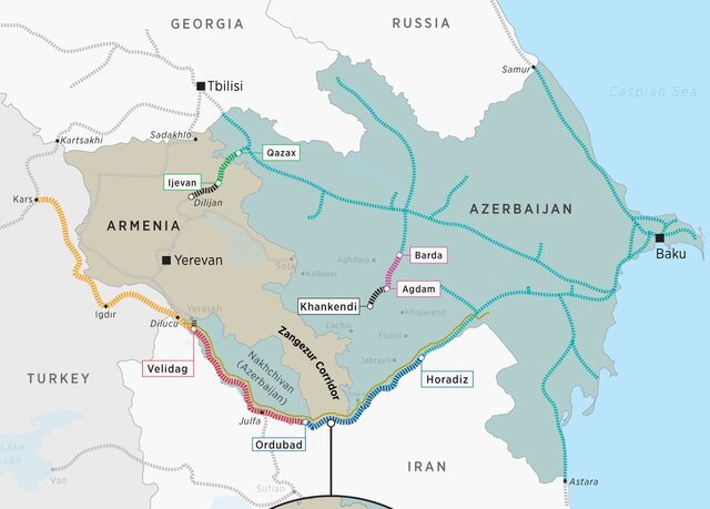 در همین حال، نشریه های آذربایجان مانند Aze.media و وب سایت تحلیلی کاسپین نیوز، به موافقت پویتن با ساخت کریدور ریلی زنگزور که نخجوان را با عبور از خاک ارمنستان به خاک جمهوری آذربایجان و ترکیه متصل می سازد، خبر دادند.