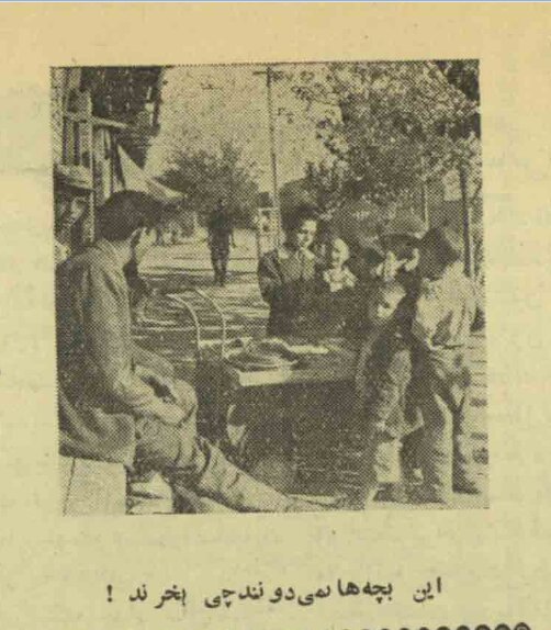آقاجون بیا و اینجا را تماشا کن! یک مشت بچهی پابرهنه و بیچاره دور یک کاسب حلقه زدن و با دهشی [ده شاهی] که در دست دارند دودلاند که از این کاسب زولبیا بخرند یا سوهون قم یا شوکولات کشی. چند تا از این بچهها هم اصلا پولی در دستشون نیست اما با چشمهاشون میخواند هرچی که روی چرخ کاسب میبینند ببلعند. اینها نمونهای از بچههای شهر تهراناند. پدر و مادرشون، اگر پدر و مادری داشته باشند اینها را توی کوچه و خیابون ول کردن و به امان خدا سپردند.