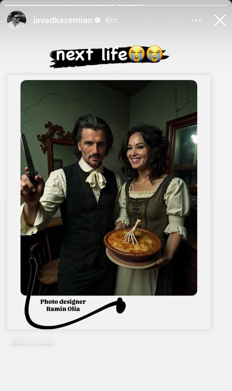 او که همیشه علاقه جالبی به مونیکا بلوچی، بازیگر ایتالیایی داشته، بارها با این ماجرا شوخی کرده است. کاظمیان دیروز تصویری از خودش کنار این بازیگر که با هوش مصنوعی ساخته شده بود را منتشر کرد.