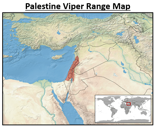 افعی فلسطینی مکانهایی را ترجیح میدهد که جمعیت موشها و منابع آب فراوان باشد. متأسفانه، این مکانها معمولاً مکانهایی هستند که انسانها در آن زندگی میکنند و کشاورزی میکنند و این گونه مسئول بیشتر نیشهای مار در محدوده بومی خود هستند.