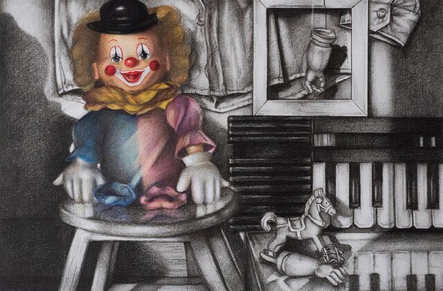 رنگها، نمادها که بهشکل روشن، تاریک، شفاف، براق و دایرهوار در پهنای زمین در تصاویر آراسته شدهاند، همان ابزار و وسایل بازی کودکانه است که تا ابد با ما همراه است و دایرهوار بودن آن به تعبیری عادت وارونه ایست که دائما با ما در ارتباط تنگاتنگی قرار دارند و غفلت از آن، خود بازی دیگریست که بهصورت توپی گرد و جذاب، دلربایی میکند و در این بازیِ مستانه از هویت و حقیقت اصلی جا ماندهاند.