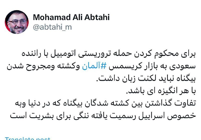 به گزارش خبرگزاری خبرآنلاین، محمدعلی ابطحی فعال سیاسی اصلاح طلب در شبکه اجتماعی ایکس نوشت:
