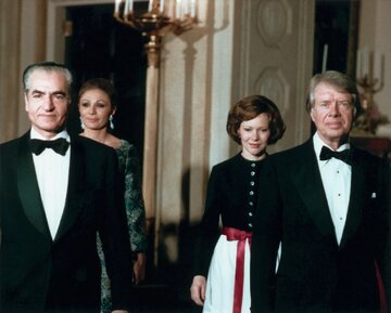 جیمی کارتر، رئیسجمهور پیشین آمریکا و مسنترین رئیسجمهور در قید حیات این کشور روز یکشنبه در سن ۱۰۰ سالگی درگذشت. تصویری از آخرین حضور او در تهران به همراه همسرش در ضیافت شام محمدرضا پهلوی و فرح را ببینید. / خبرآنلاین