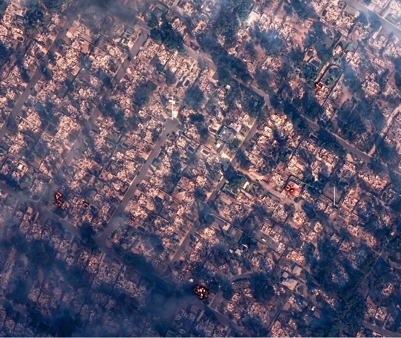 تصاویر ماهوارهای نشان میدهد که ساحل پسیفیک پلیسیدیس کاملا در آتش سوخته و از بین رفته است.