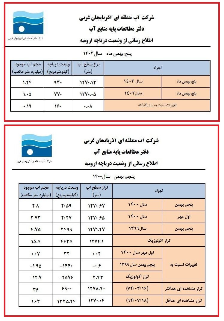 همچنین وسعت دریاچه ارومیه به ۹۳۰ کیلومتر مربع رسیده که نسبت به آبانماه کمی بهبود یافته و هم اکنون نگین آبی آذربایجانغربی تنها ۱.۲۴ میلیارد مترمکعب آب دارد.