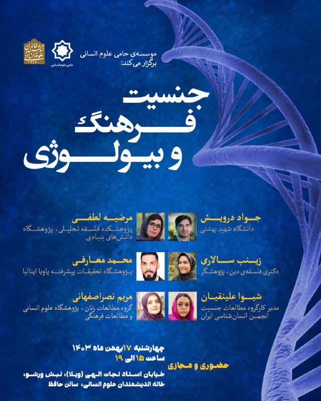 به گزارش خبرگزاری خبرآنلاین، در نشست «جنسیت، فرهنگ و بیولوژی» جواد درویش، مرضیه لطفی، زینب سالاری، محمد معارفی، شیوا علینقیان و مریم نصر اصفهانی سخنرانی خواهند کرد.