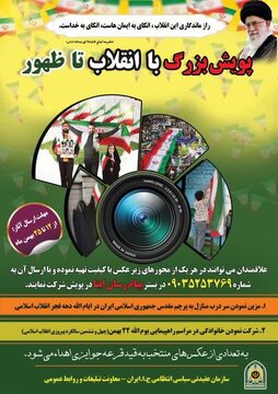 گفتنی است علاقمندان میتوانند در هر یک از محورهای بالا عکس با کیفیت تهیه نموده و از۱۲ تا۲۵بهمن ماه ۱۴۰۳با ارسال آن به شماره ( ۰۹۰۳۵۲۵۳۷۶۹) در بستر پیامرسان ایتا در پویش شرکت نمایند.