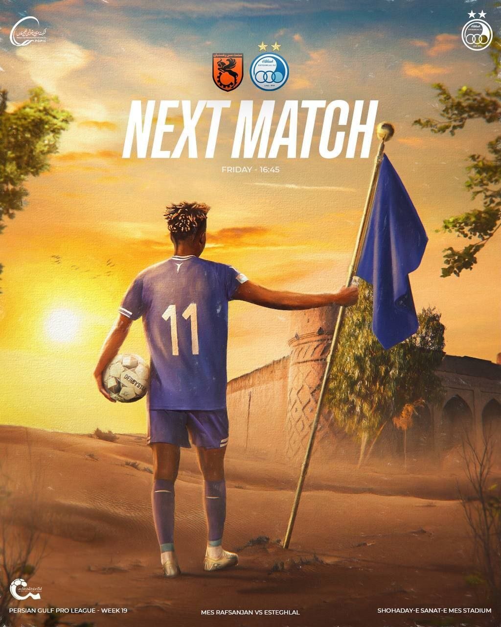 در دیگر بازیهای مهم، فردا ملوان و سپاهان مقابل یکدیگر قرار میگیرند و مس رفسنجان هم پذیرای استقلال است. باشگاه استقلال به همین مناسبت پوستری منتشر کرد که پرچم آبی این تیم در دل کویر در دستان جوئل کوجو مهاجم جدید این تیم است که در بازی مقابل الشرطه درخشان ظاهر شده بود و توانست گلزنی هم کند.