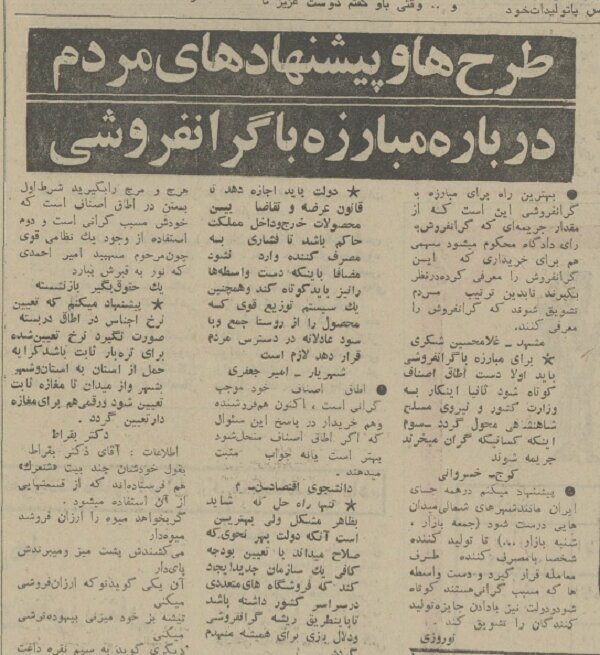 به گزارش خبرگزاری خبرآنلاین، در نیمه‌های دهه‌ پنجاه خورشیدی، مسئله گران‌فروشی به یکی از دغدغه‌های جدی مردم و مسئولان ایران بدل شده بود؛ مشکلی که نه‌تنها تورم اقتصادی، بلکه معیشت روزانه‌ خانواده‌ها را تحت تأثیر قرار می‌داد. در چنین فضایی، روزنامه اطلاعات با جمع‌آوری دیدگاه‌ها و راه‌حل‌های پیشنهادی شهروندان از نقاط مختلف کشور، به نوعی تریبون انتقاد و مطالبه‌گری اجتماعی تبدیل شد.