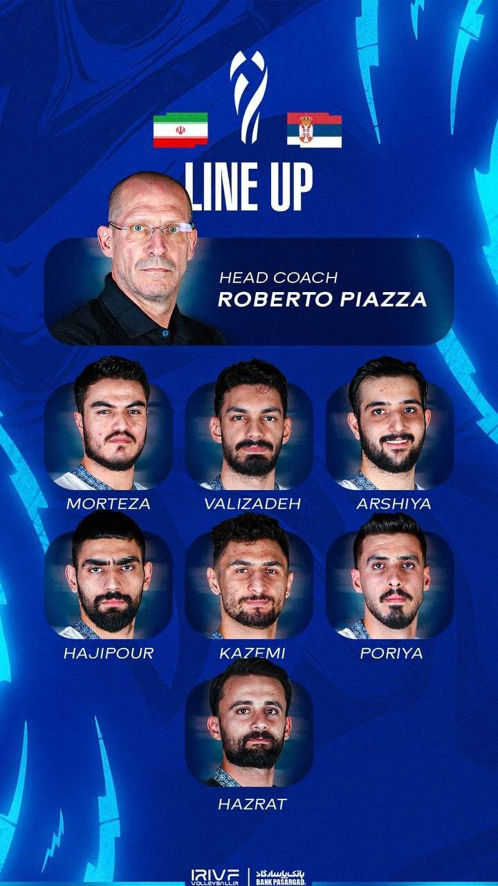 روبرتو پیاتزا سرمربی تیم ملی لیست شروع کننده بازی ایران را اعلام کرد که به شرح زیر است: