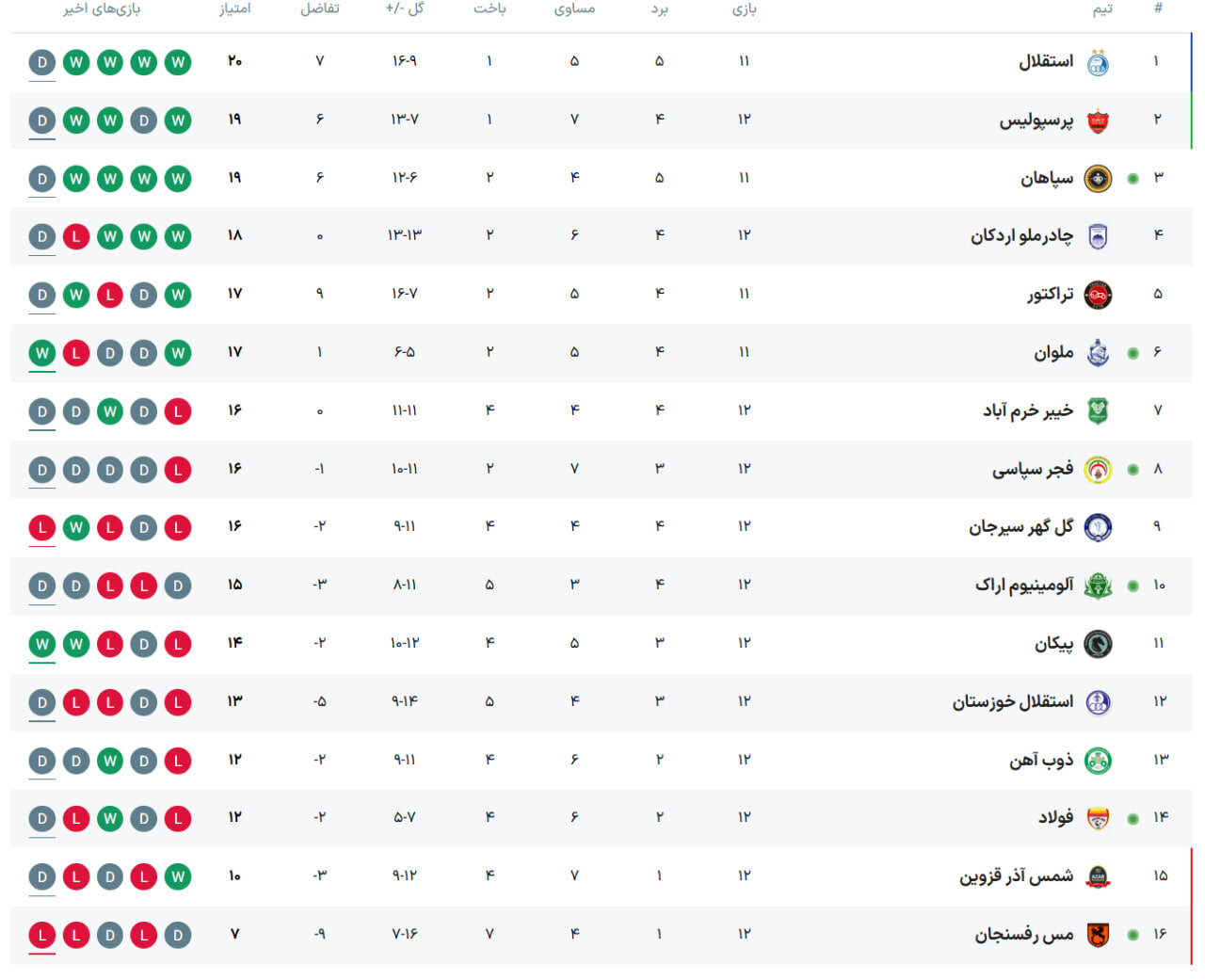 جدول لیگ برتر پس از تساوی استقلال و پرسپولیس در دربی 106 دستخوش یک تغییر شد.