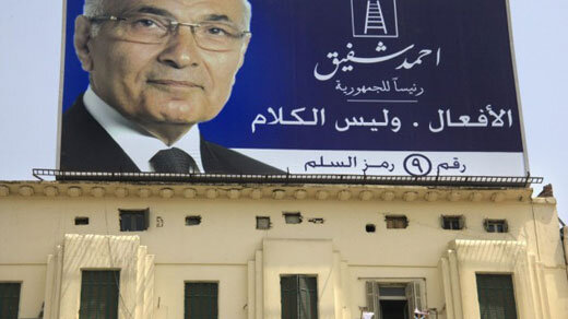در تبلیغات محیطی احمد شفیق یکی از نامزدهای انتخابات که از قضا مورد حمایت ارتش، باقی ماندگان رژیم مبارک، عربستان، آمریکا و اسرائیل است، از خط نستعلیق ایرانی استفاده شده است.