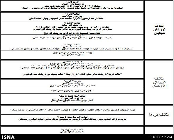 این ترکیب کلی از فهرستهای انتخابی در عراق است که پارلمان هم قرار است از دل همین فهرستها به دست بیاید