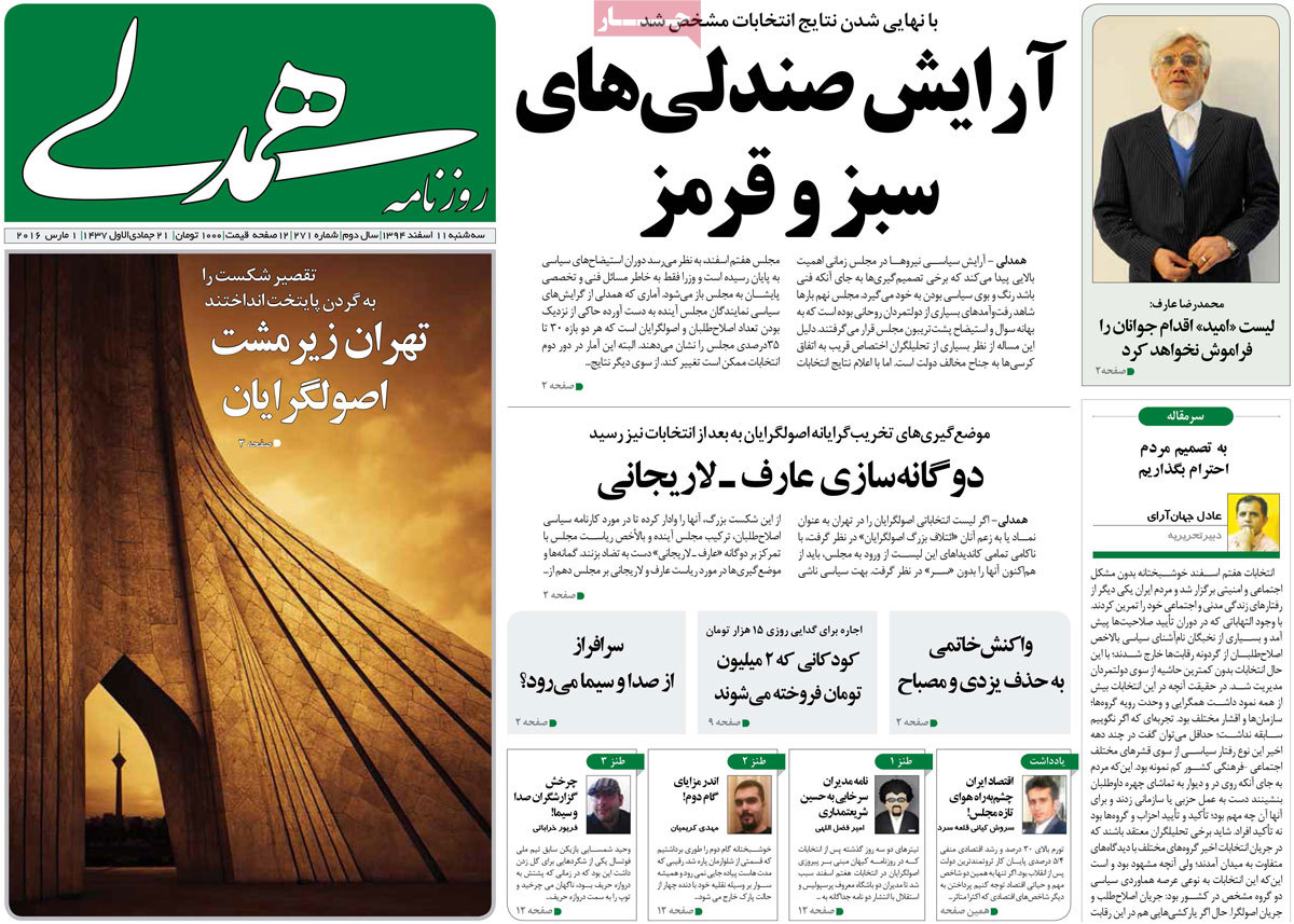 رویدادهای پساانتخابات همچنان در صفحه اول روزنامه ها جایگاه اصلی را دارد.