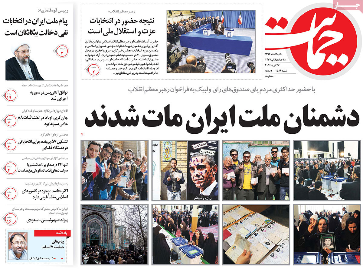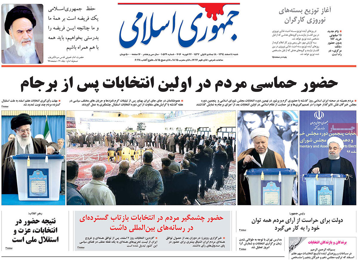 روزنامه های امروز تیترهای خود را به سخنان رهبرمعظم انقلاب در باره انتخابات اختصاص داده اند.