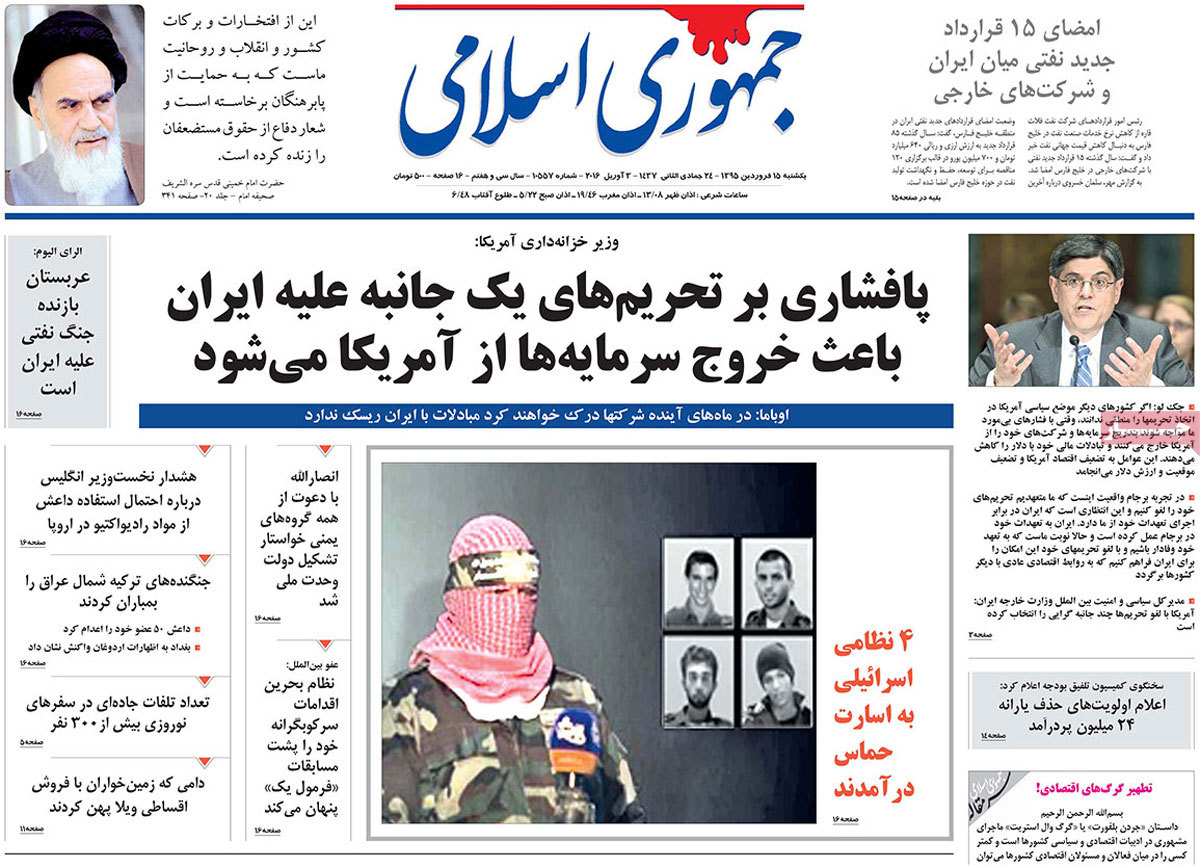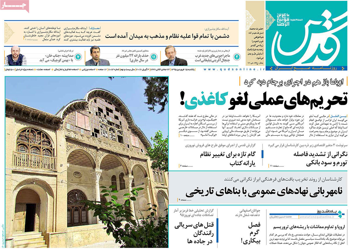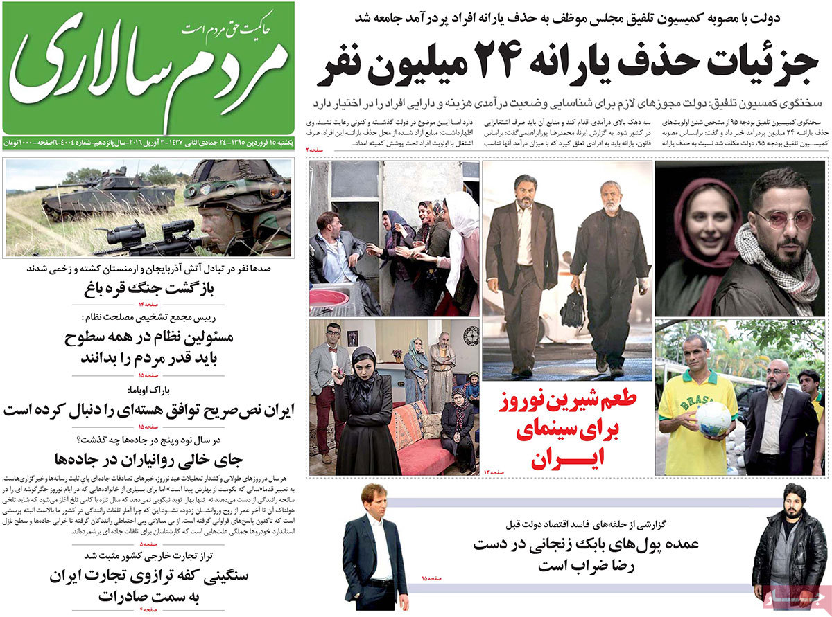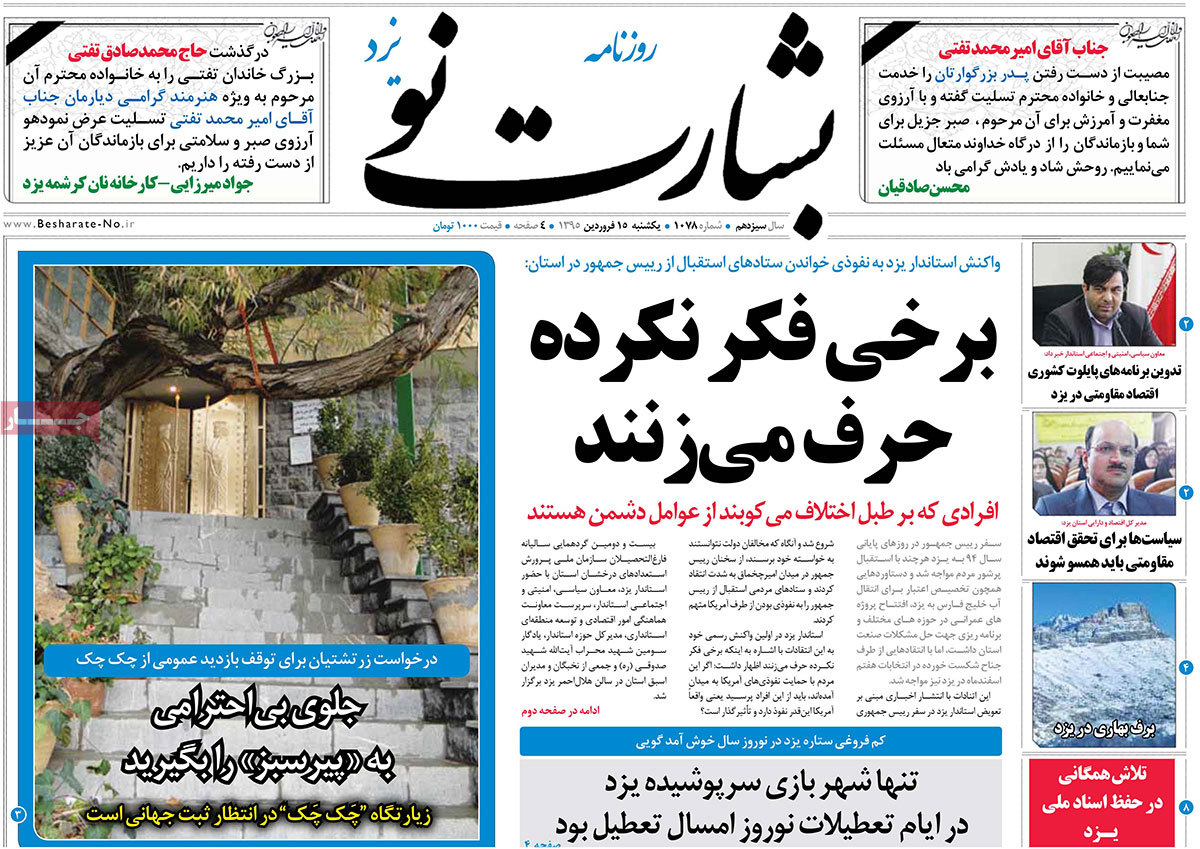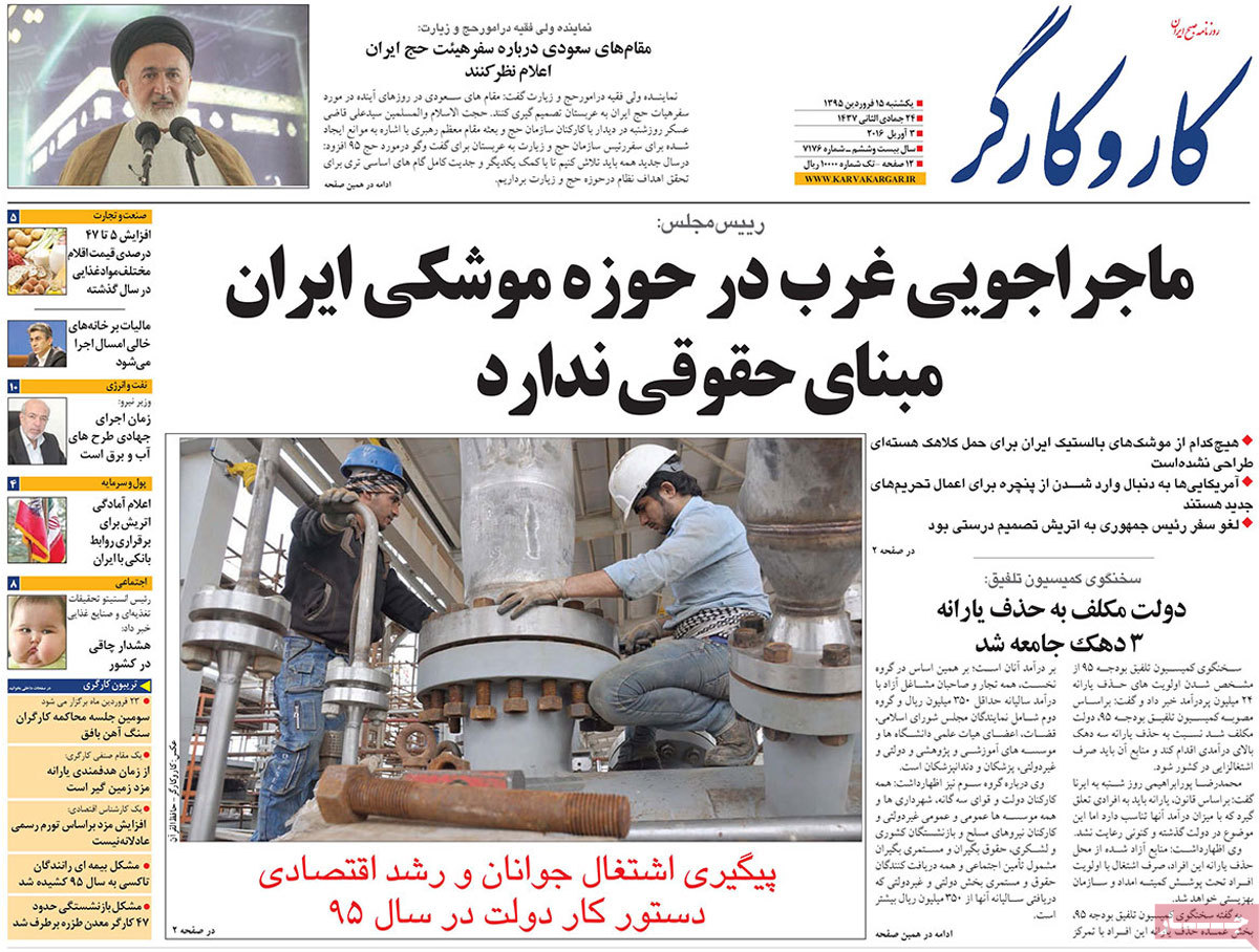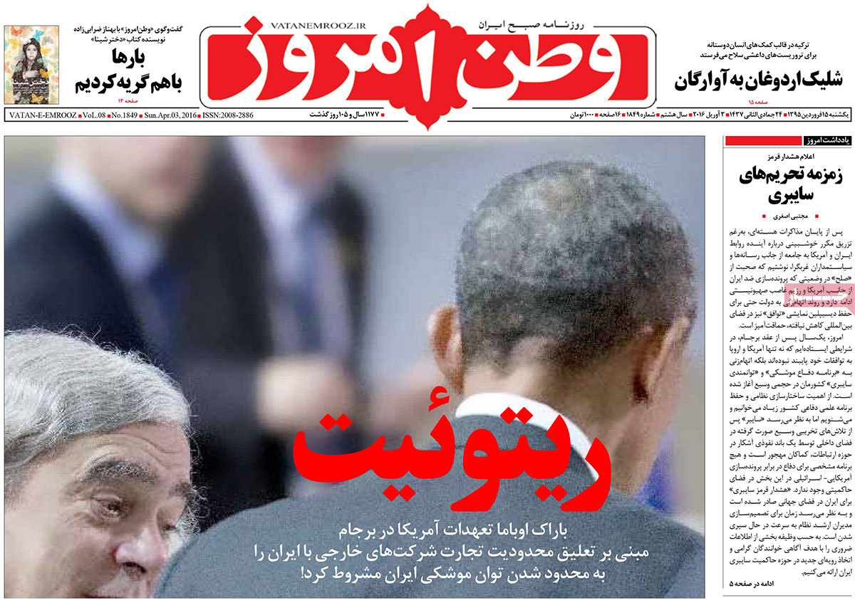https://khabaronline.ir/x6t2j ۱۵ فروردین ۱۳۹۵ - ۰۲:۰۲ کد خبر 523432 اخبار چندرسانهای عکس ۰ نفر ۱۵ فروردین ۱۳۹۵ - ۰۲:۰۲ تصویر صفحه اول روزنامه های یکشنبه15فروردین1395 مطبوعات امروز تیترهای متنوعی را در صفحه اول خود جای داده اند. 17302 کد خبر 523432 برچسبها مطبوعات خبرهای مرتبط تصویر صفحه اول روزنامه های شنبه14فروردین1395