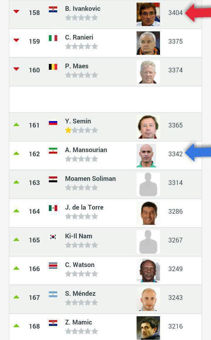 رنکینگ جهانی مربیان منتشر شد.